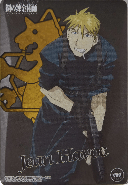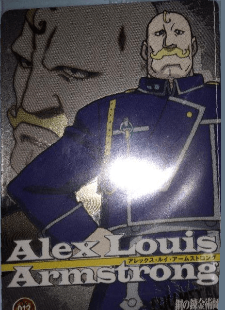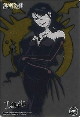 A different set of collectable cards and this one might actually be my bane… there’s two sets of them. As you can see on the latter half, it looks like I only have 4-8 but 1-3 don’t really match with the rest of the set. 1 and 3 are images of Edward without the words and in different style so they’re with the other Edward images further below. 2 is an image of Roy and Ed together, also somewhere below. Anyway, I can’t help but really like the Lust card. Maes is also pretty nice!