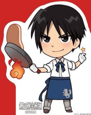 (Sorry they don’t all match…)Here’s some really cute merch made for a Fullmetal alchemist café. As you can see all the characters are dressed up like they’re running some sort of Café in a delightful chibi style. I adore the smiling Envy and Lust. (And this makes me imagine there’s some rival cafés all competing with each other.)